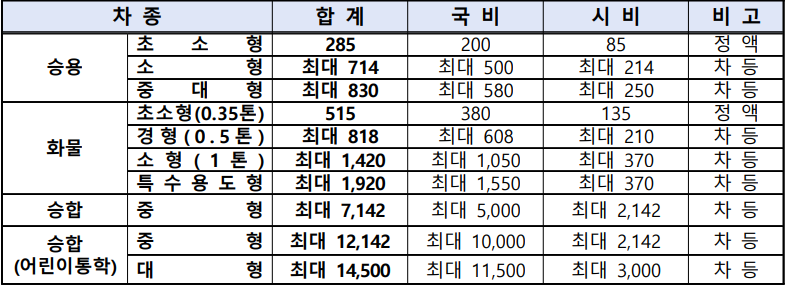 - 개인택시 등 개인영업용 차량의 경우 사용본거지가 대전시인 경우 지원함