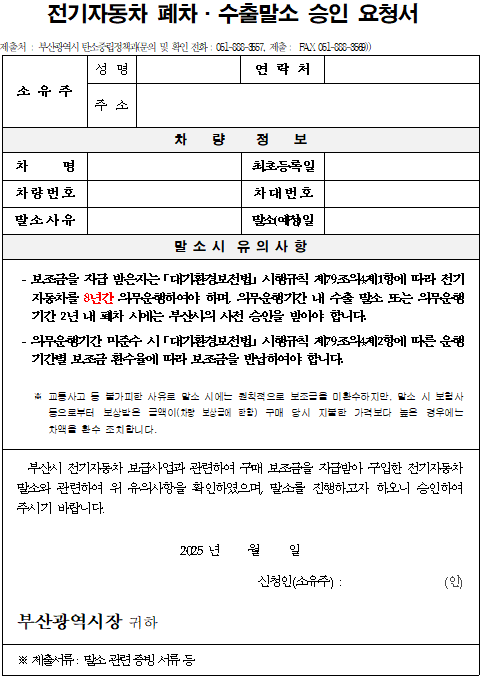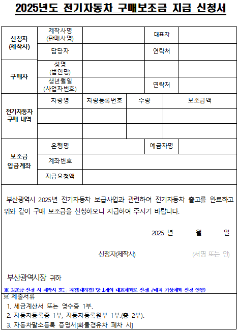 (별지 2호 서식) 2025년 전기자동차 구매보조금 지급 신청서 1부.