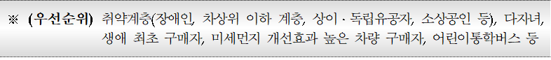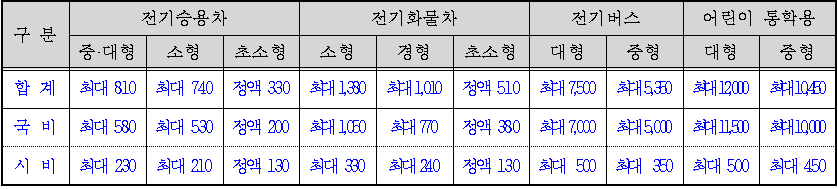 - 전기버스(152대) : 140대(시내버스 우선) 우선순위 12대(어린이 차량)