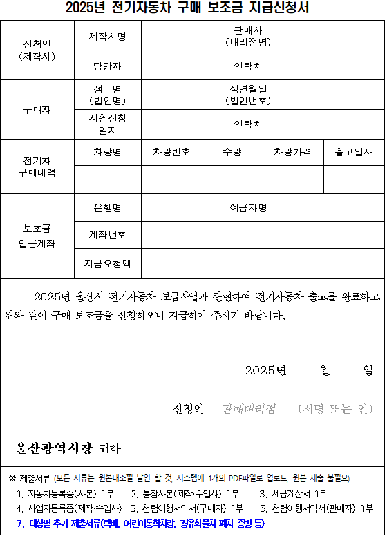 2025년 울산시 전기자동차 민간보급사업