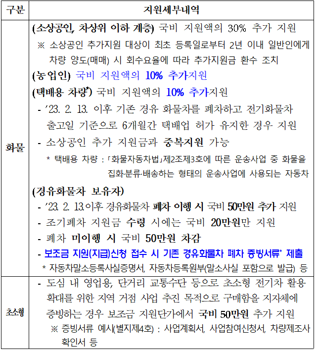 | 출산가정 전기차 구매 | - 가족관계증명서, 초본 등 출산확인 서류 |