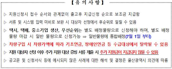 ○ 지원대상 : 구매지원 신청 접수일 기준으로 연속하여 울산광역시에 60일 이상 주소를 두어야 함