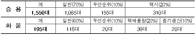 ○ 우선순위 : 차종별 보급 물량 중 아래의 범위 내에서 우선 지원