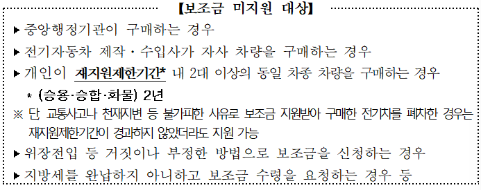 - 재지원기한내 동일 차종 차량을 구매할 경우 보조금 미지원