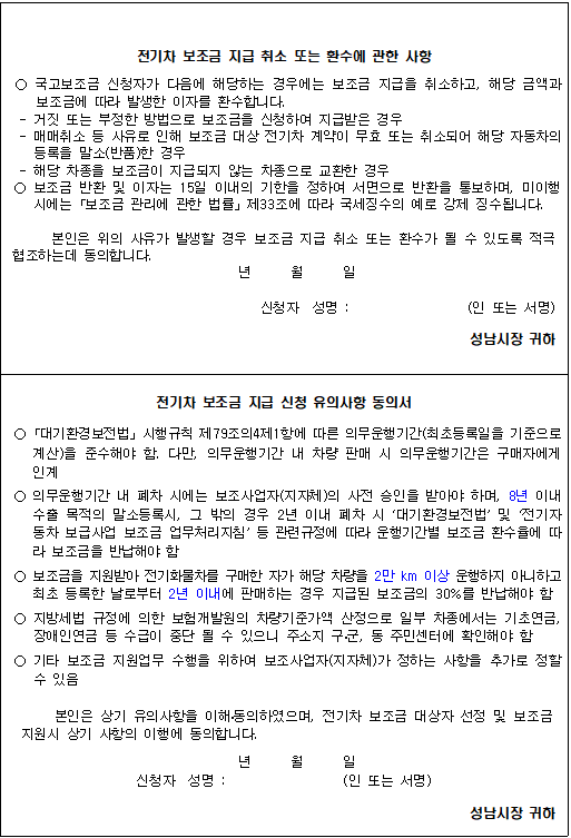 성남시 기후에너지과 전기차 구매 보조금 지원 업무