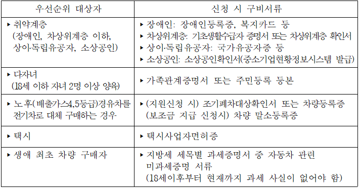 대상자 선정 : 배정받은 차량의 출고·등록순(출고증빙서류 필수 첨부)
