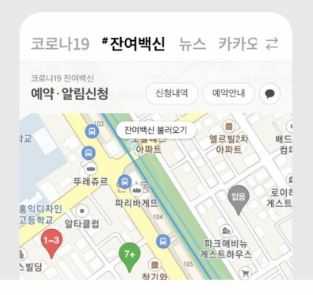 이 기능은 잔여 아스트라제네카 백신이 발생한 의료기관을 네이버나 카카오 지도에 표시하고, 사용자가 해당 기관에 직접 당일 접종도 예약할 수 있게 하는 방법입니다.