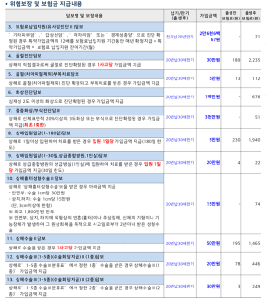 보장 연령 출생 후 최대 30세까지 출생 후 최대 30세까지 출생 후 최대 30세까지 출산 후 최대 30세까지