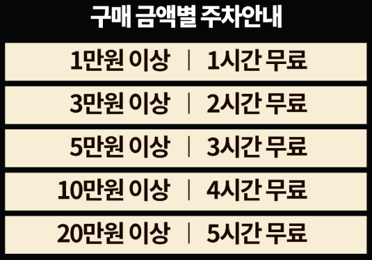뉴코아아울렛 일산점 구매 금액별 무료주차 시간
