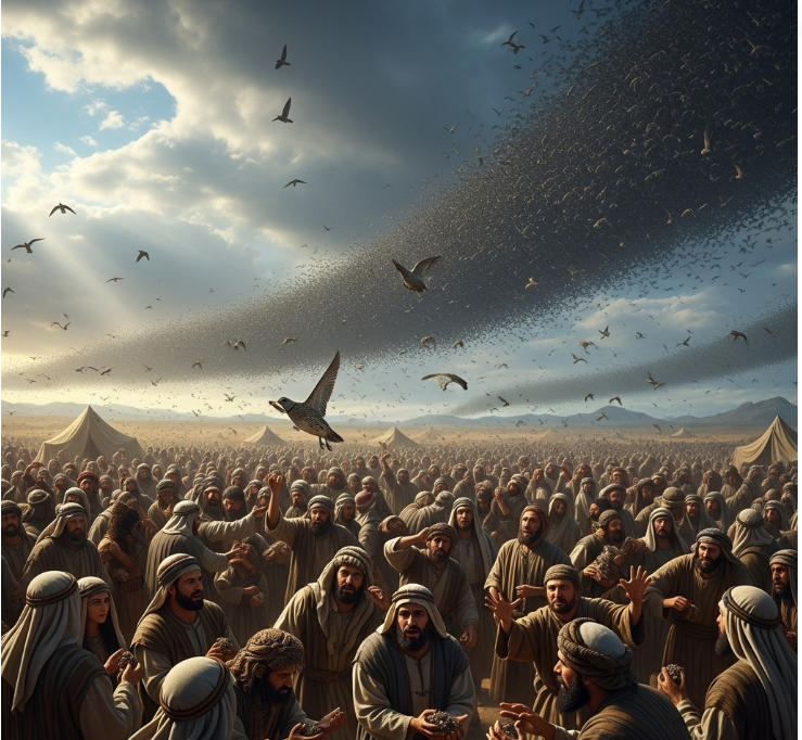 하나님은 백성의 요구대로 메추라기를 보내지만, 그들의 탐욕은 결국 재앙을 불러옵니다.