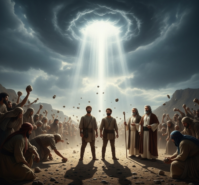 온 회중이 그들을 돌로 치려 하는데 그때에 여호와의 영광이 회막에서 이스라엘 모든 자손에게 나타나시니라