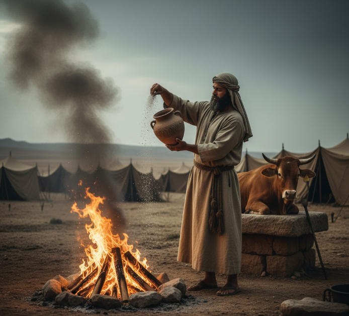 👉 의미: 붉은 암송아지는 ‘죽음의 부정’을 정결케 하기 위한 희생 제물로, 속죄와 정결을 동시에 상징합니다.