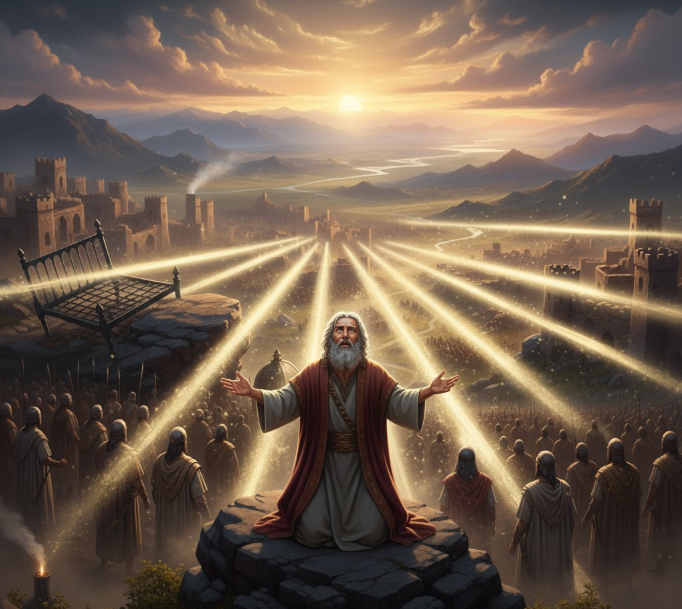 여기서 모세는 자신의 역할이 끝나감을 인정하고, 다음 지도자를 준비하는 영적 리더십을 보여줍니다.