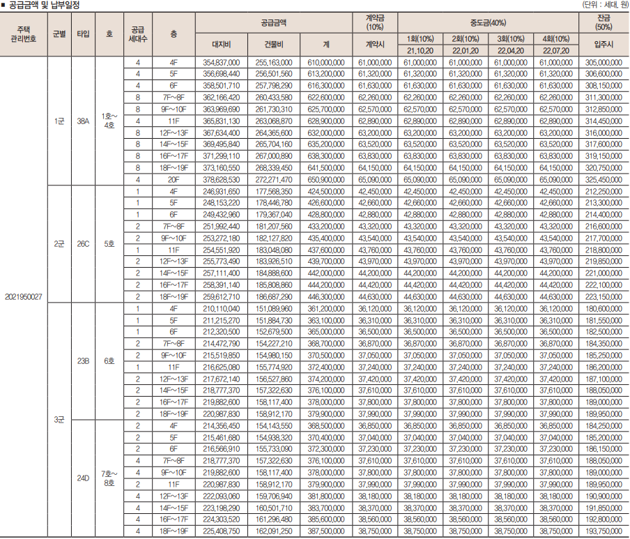 ※ 청약 1군 : 38A, 청약 2군 : 26C, 청약 3군 : 23B, 24D