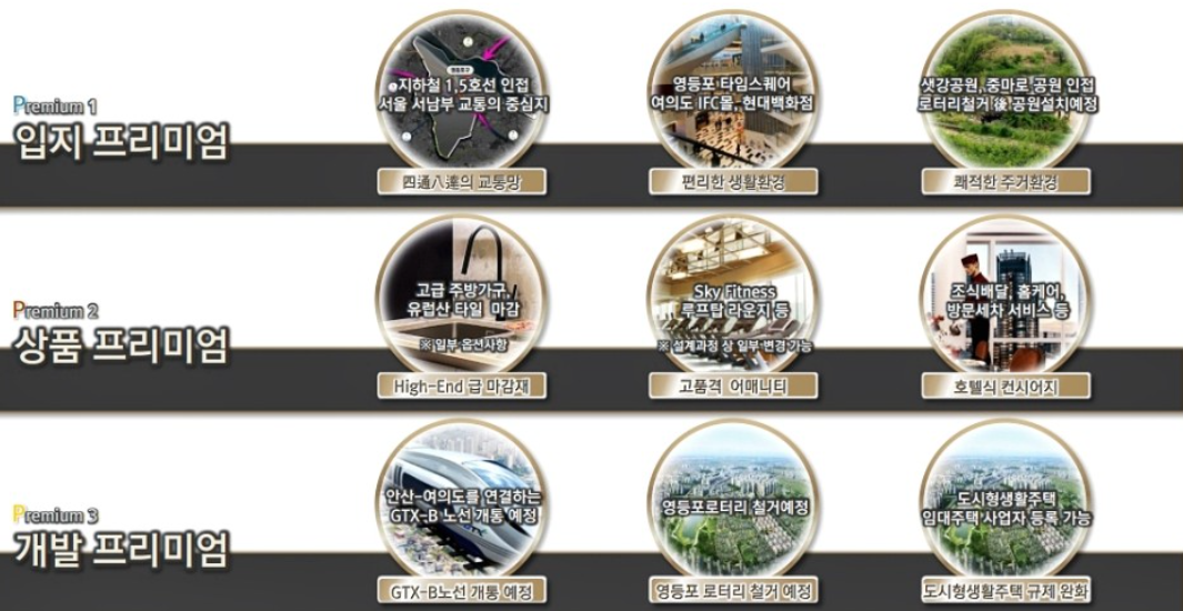 - 신세계/롯데백화점 및 타임스퀘어, 이마트, 영등포시장 등 풍부한 인프라로 편리한 생활