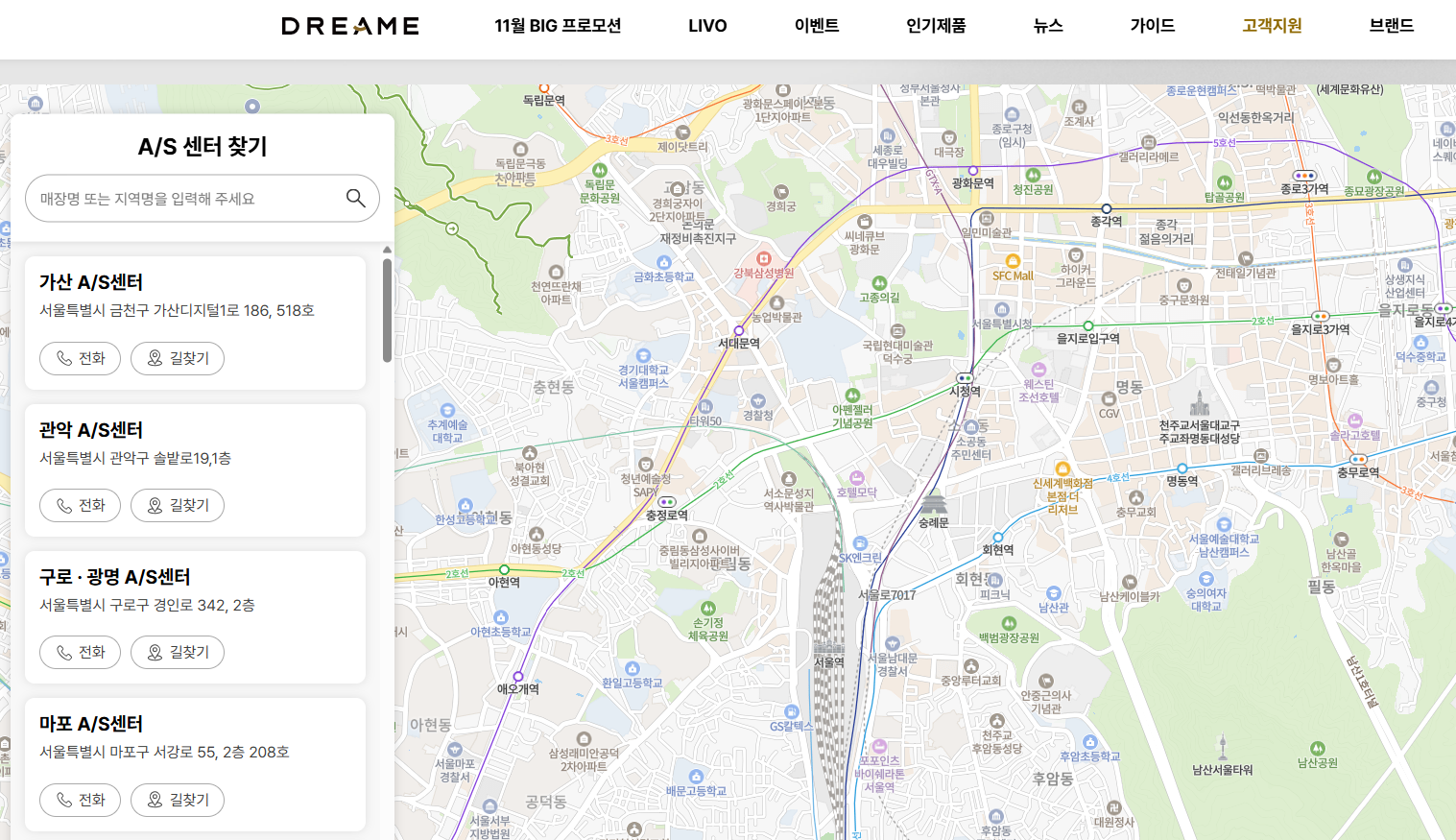 | 드리미 A/S센터 구로·광명 | 서울특별시 구로구 경인로 342, 2층 | 010-5030-2173 |
