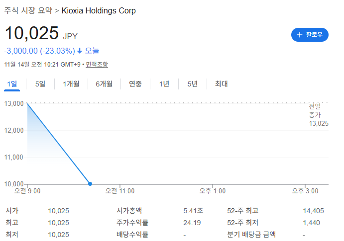 이런 가운데 Kioxia가 실적 발표에서 기대치에 못 미치거나 시장이 우려하던 사안을 노출하자, 투자자들이 반응을 보이기 시작했습니다.