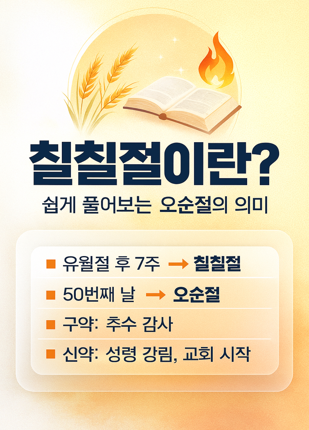 오늘은 칠칠절이 무엇인지, 성경에서는 어떻게 설명하고 있는지, 그리고 현대 교회에서는 어떤 의미로 지키는지 쉽게 정리해드릴게요.