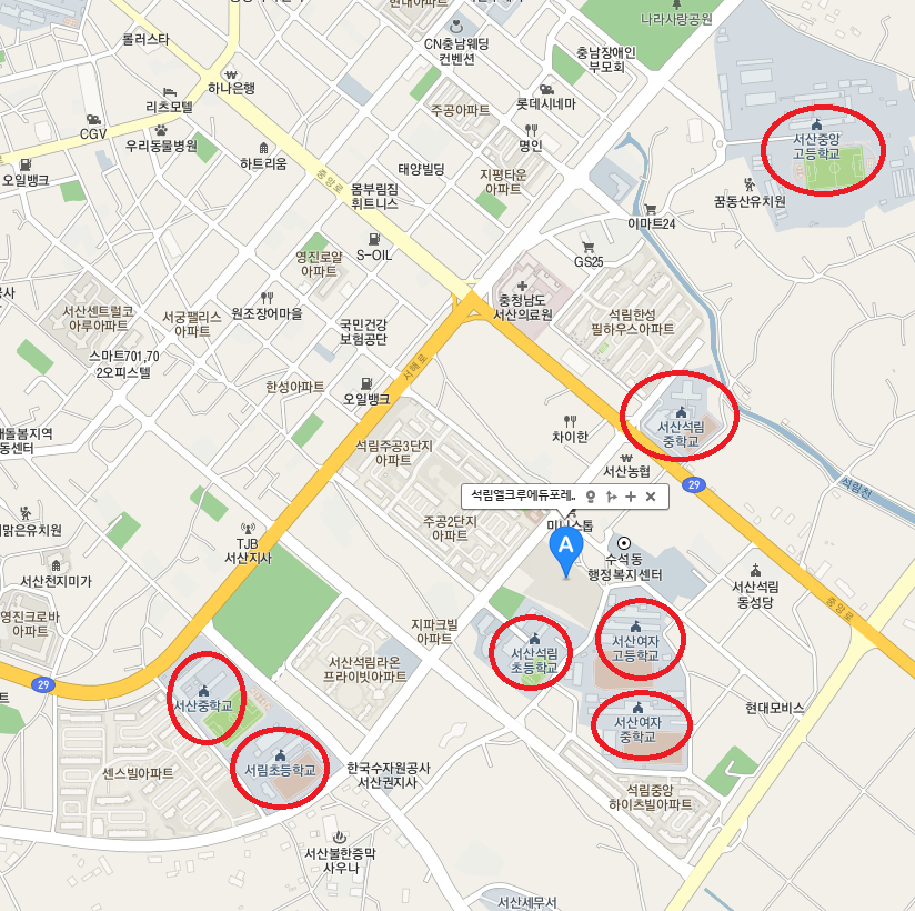 - 단지와 연결된 석림초, 서산 명문 서산여고, 서산여중, 서산중앙고 등 도보 5분 거리