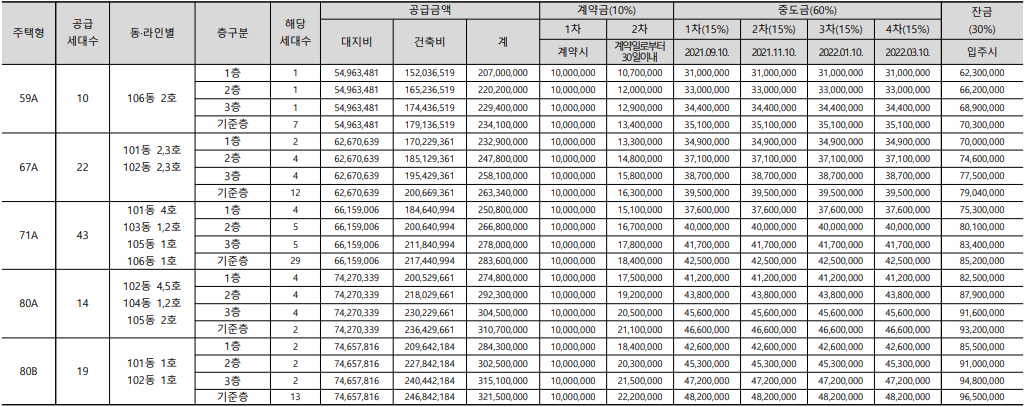 - 아파트 지하 2층, 지상 20층 6개 동 총 266세대 중 일반공급 108세대 및 부대복리 시설