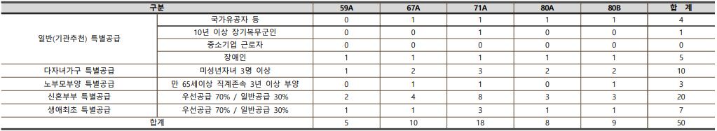 [특별공급 50세대(일반[기관추천] 특별공급 10세대, 다자녀가구특별공급 10세대, 신혼부부특별공급 20세대, 노부모부양특별공급 3세대, 생애최초특별공급 7세대 포함)]