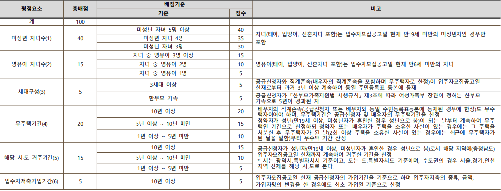 - 입주자 모집공고일 현재 혼인 중이거나 미혼인 자녀가 있는 자