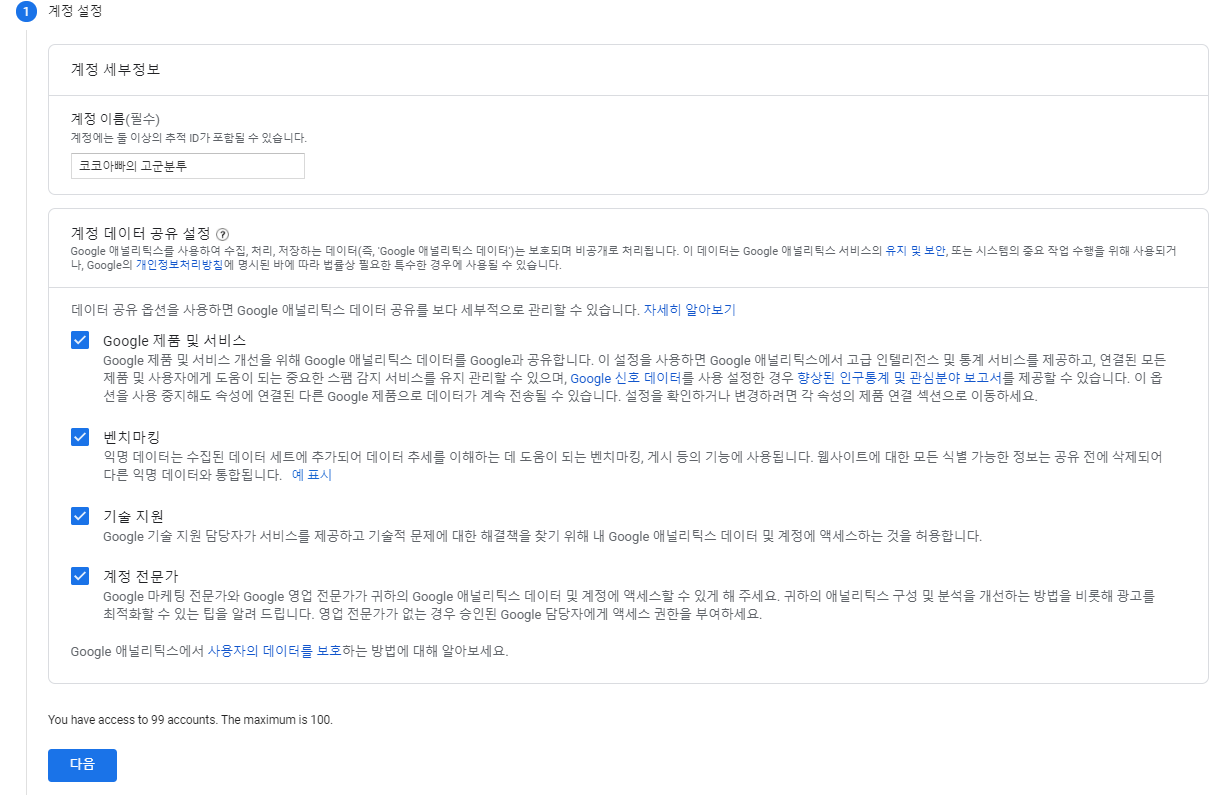 계정 이름을 넣어 주신 후 아래 클릭해주시고 다음버튼을 눌러주세요.