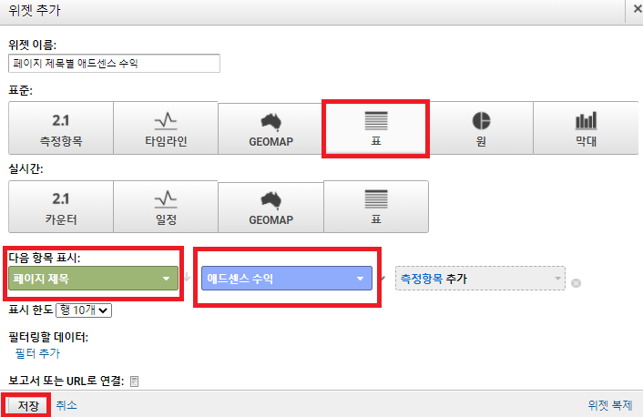 표를 클릭하시고 다음 항목 표시에 페이지 제목, 애드센스 수익을 클릭하시고 저장해주세요.