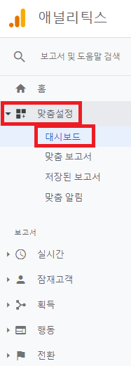 목록이 많아서 안 보일 경우에는 오른쪽 위 검색창에서 애널리틱스를 검색하면 쉽게 찾을 수 있습니다.