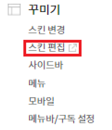 꾸미기 탭에 스킨 편집 버튼을 눌러주면 오른쪽 위에 HTML 편집하기 버튼이 있습니다.