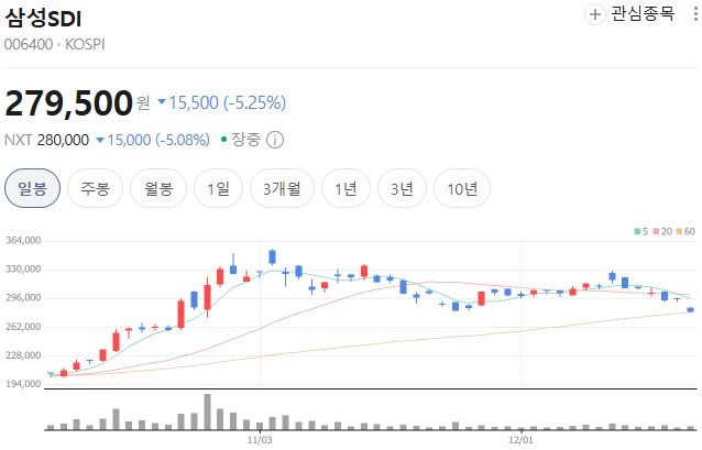 이번 하락은 삼성SDI 자체 악재라기보다는, 업종 대표주인 LG에너지솔루션발(發) 충격이 2차전지 섹터 전반으로 확산된 결과로 보는 해석이 지배적입니다.