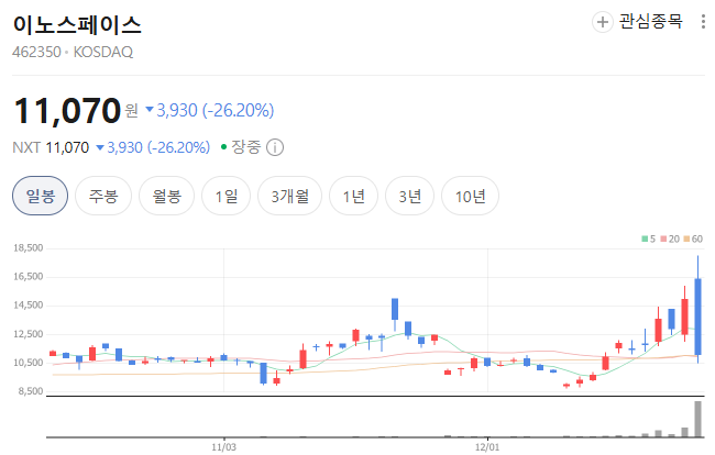 1. 이노스페이스 주가 현황: 천국에서 지옥으로