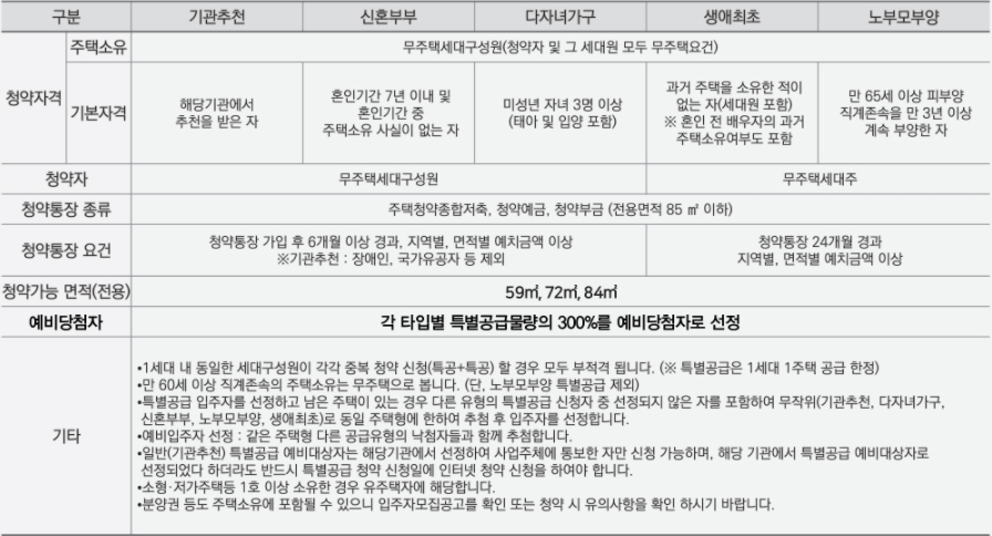 특별공급[일반(기관추천), 다자녀가구, 신혼부부, 노부모부양, 생애최초]