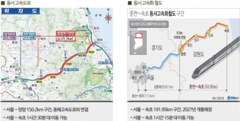 - 동서고속도로 및 동서고속화철도(KTX) '27년 개통 예정