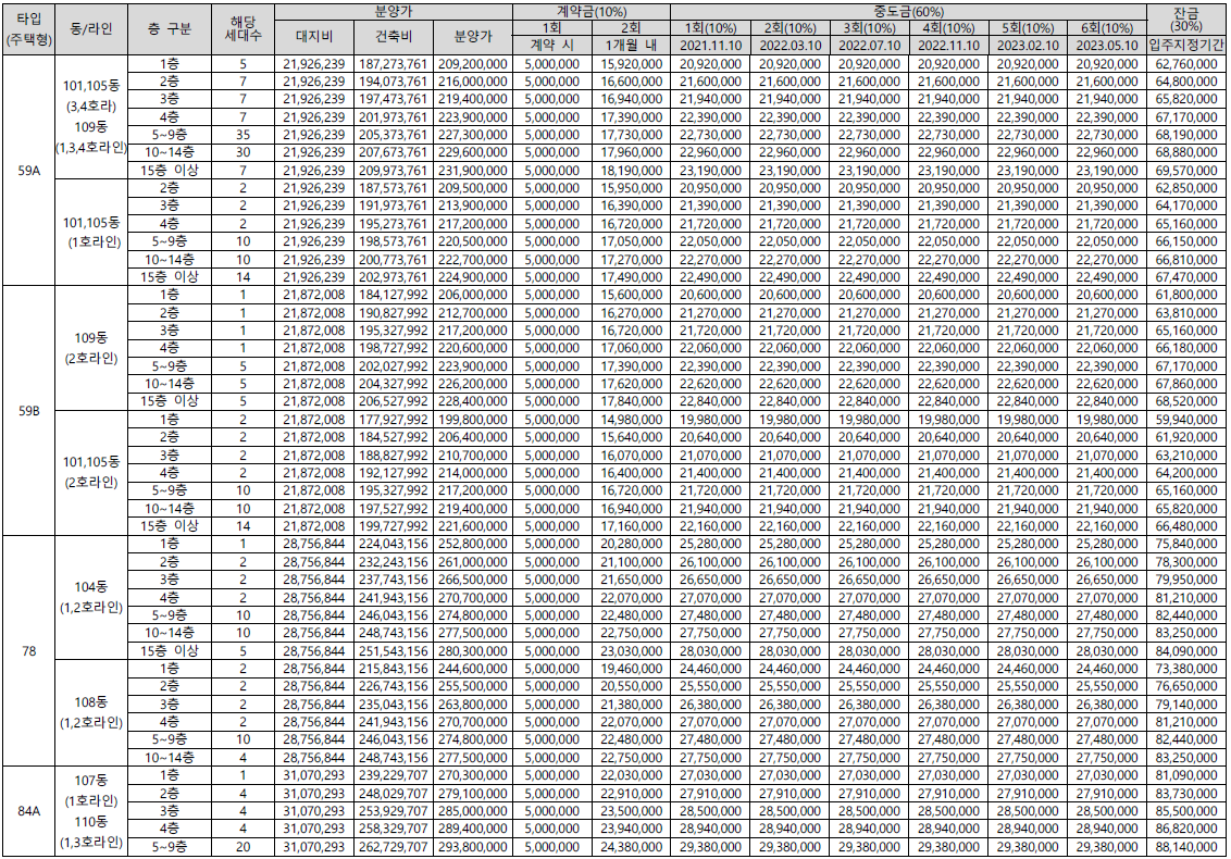 59B 타입 : 2억 600만 원 ~ 2억 2,840만 원
