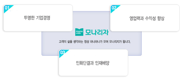21세기를 맞아 모나리자는 모든 제품에 최상의 물질을 지향하고 열린 경영을 통해 고객과 함께하는 명제 아래 제품 포트폴리오 재구축, 원가절감등 다양한 경영합리화 전략을 마련하여 급변하는 환경에 능동적으로 대처하고 지속적으로 성쟁해 나는 중이다.