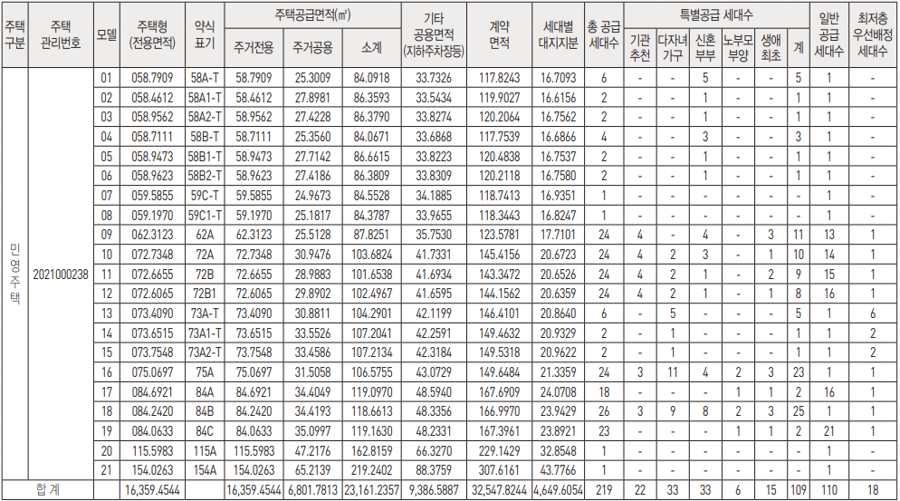 [특별공급 109세대(기관 일반[기관추천]특별공급 22세대, 다자녀가구특별공급 33세대, 신혼부부특별공급 33세대 생애최초특별공급 15세대, 노부모부양특별공급 6세대 포함)] 및 부대복리시설