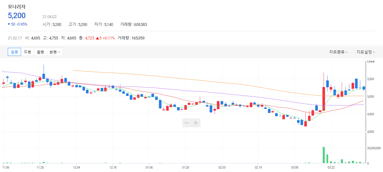 모나리자는 화장지 제조와 판매 등을 영위할 목적으로 1977년 10월 28일에 설립되어 1988년 10월 상장되어 유가증권시장에서 매매가 개시됨.