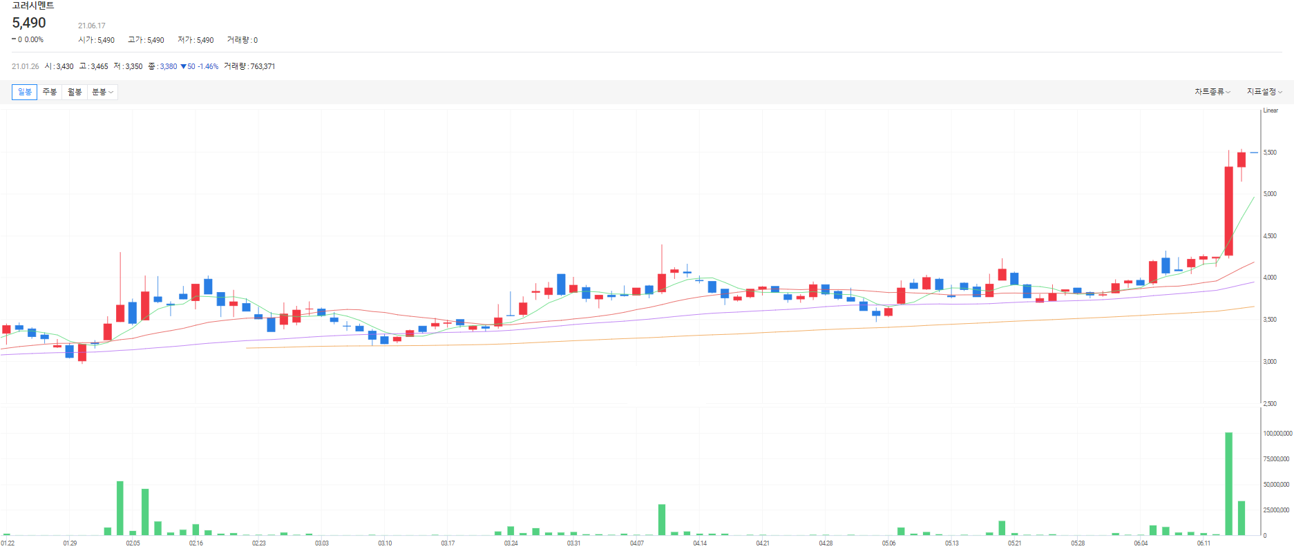 ● 시멘트 수요가 증가하여 고려시멘트 주가가 고공 행진하고 있는데 얼마큼 실적에 반영될 수 있을 것인가