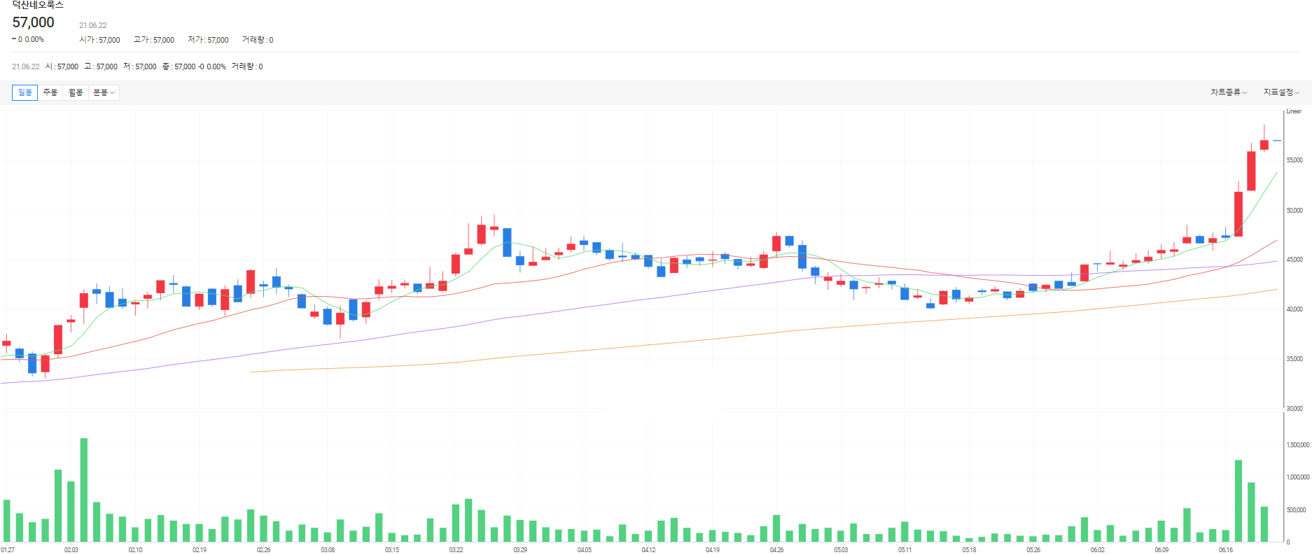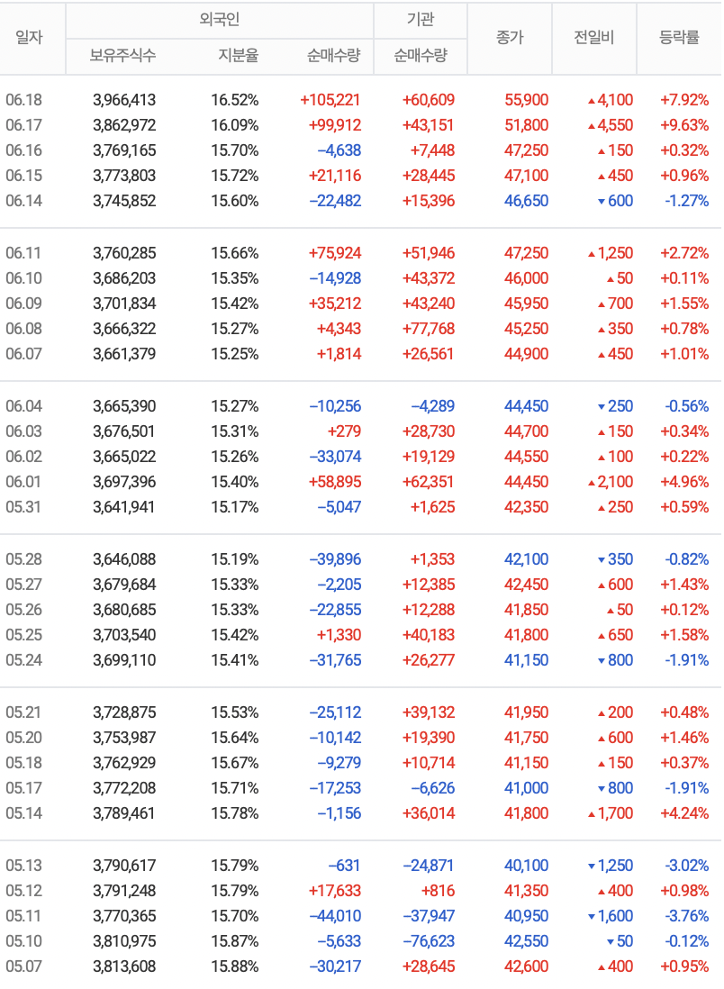 6월 1일 장대양봉 출현 이후 꾸준히 우상향 중