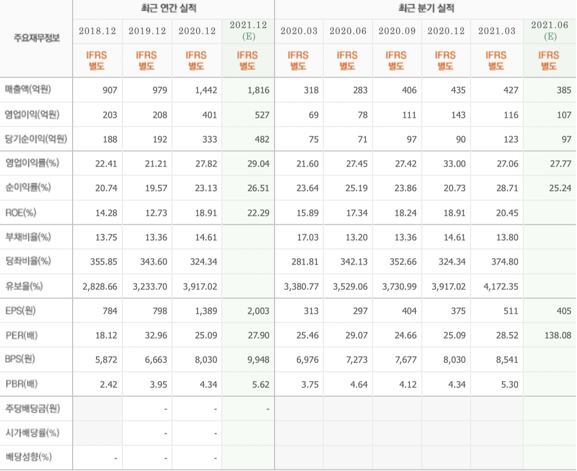 3. 21년 1분기 매출액 : 427억