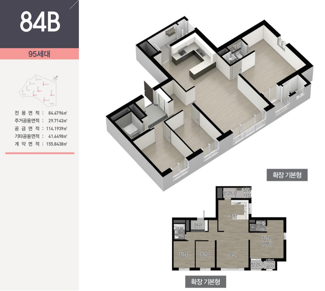 84㎡B(95세대) 3억 3,160만 원 ~ 3억 6,620만 원