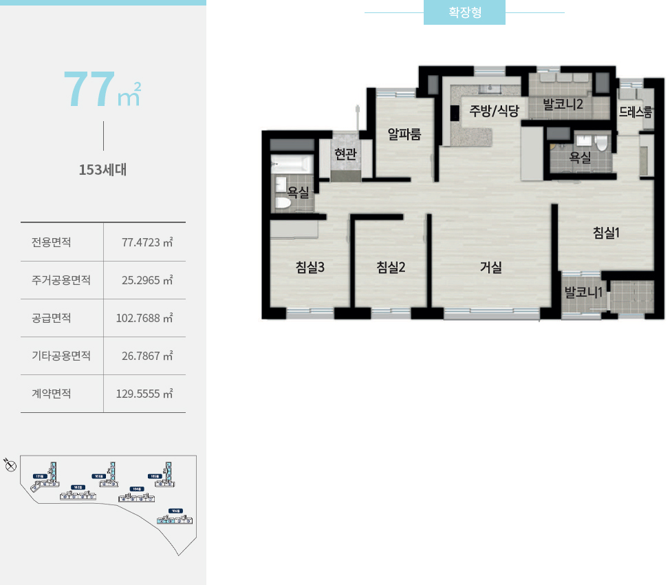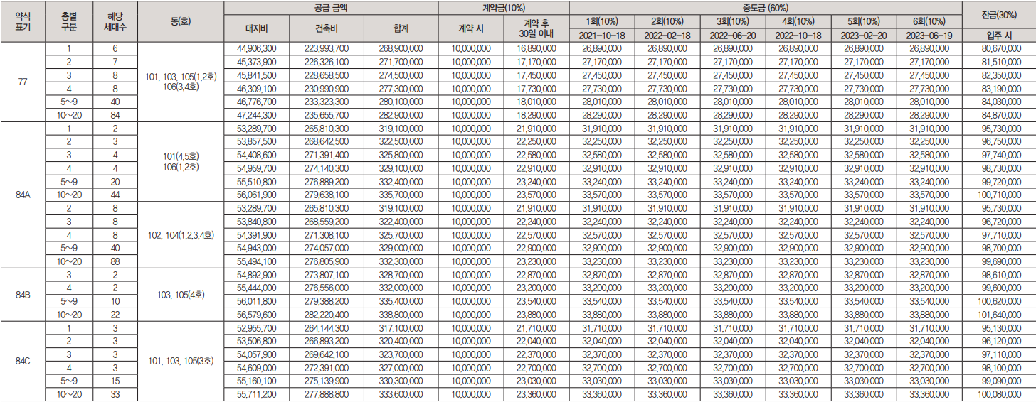 분양타입 : 77㎡ / 84㎡A / 84㎡B / 84㎡C