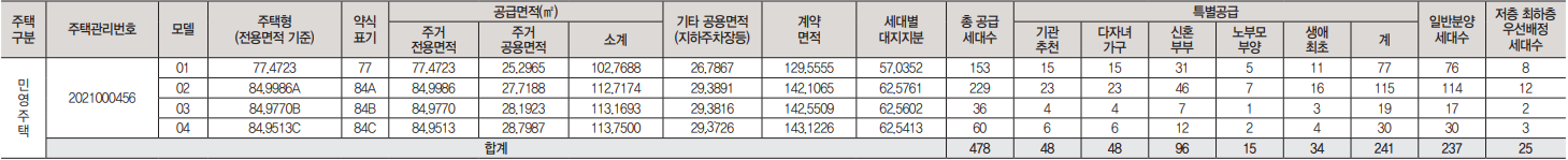 [특별공급 241세대(일반[기관추천]특별공급 48세대, 다자녀가구특별공급 48세대, 신혼부부특별공급 96세대, 노부모부양특별공급 15세대, 생애최초특별공급 34세대 포함)] 및 부대복리시설