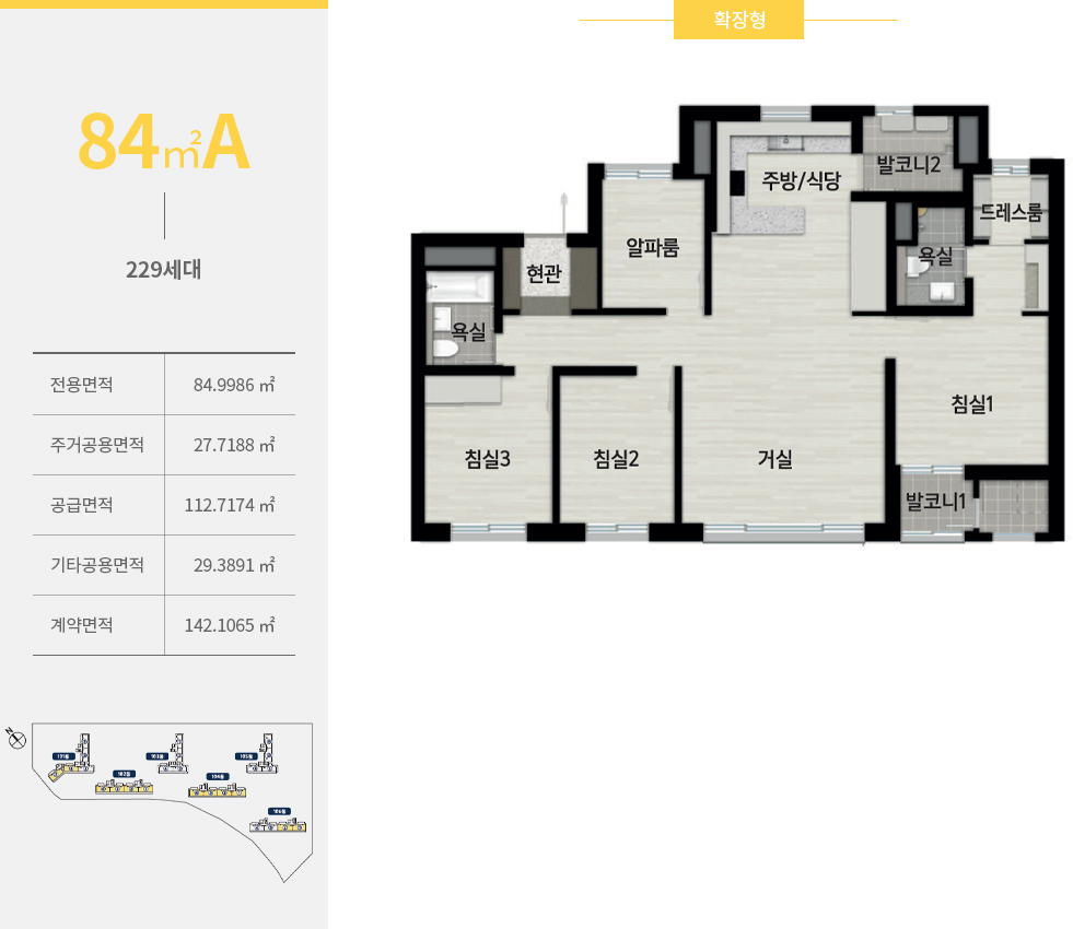 84㎡A(229세대) 3억 1,910만 원 ~ 3억 3,570만 원