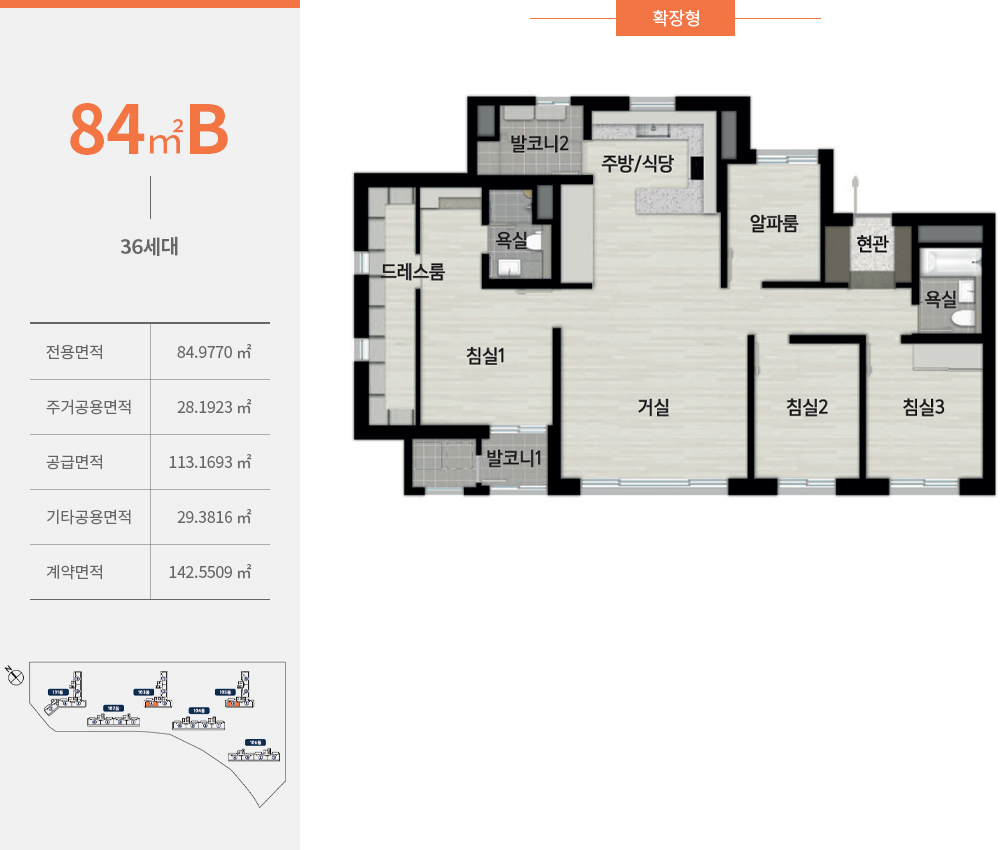 84㎡B(36세대) 3억 2,870만 원 ~ 3억 3,880만 원