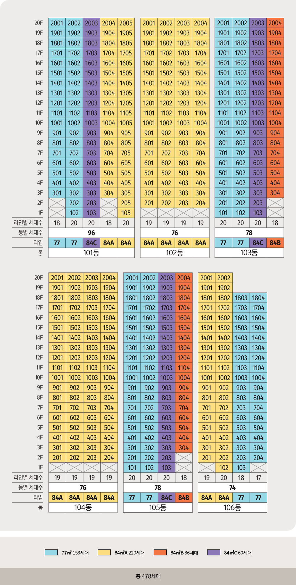 공급규모 : 지하 1층 ~ 지상 20층 6개동 총 478세대