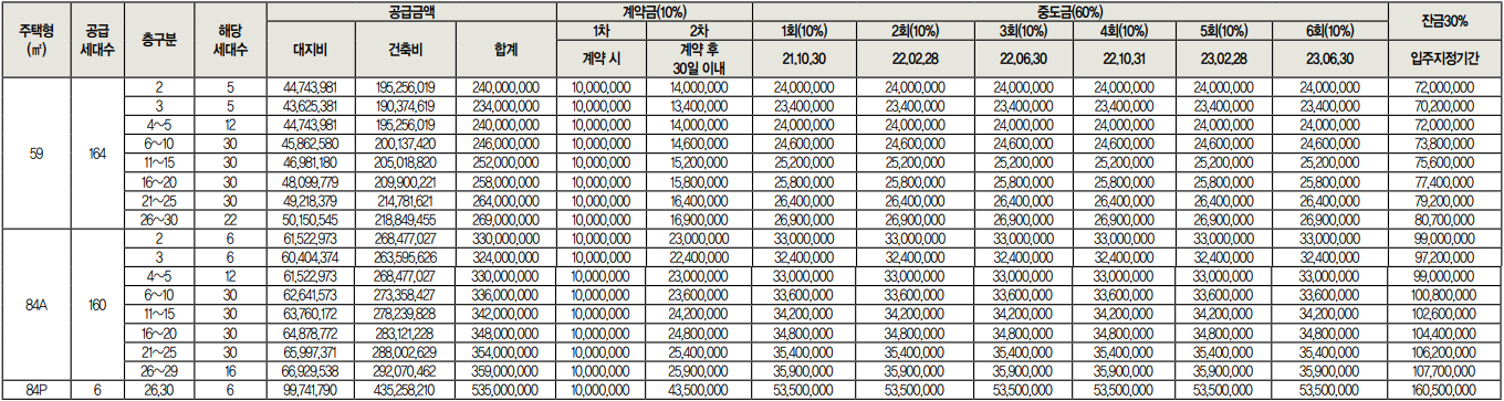 84㎡A(160세대) 3억 2,400만 원 ~ 3억 5,900만 원