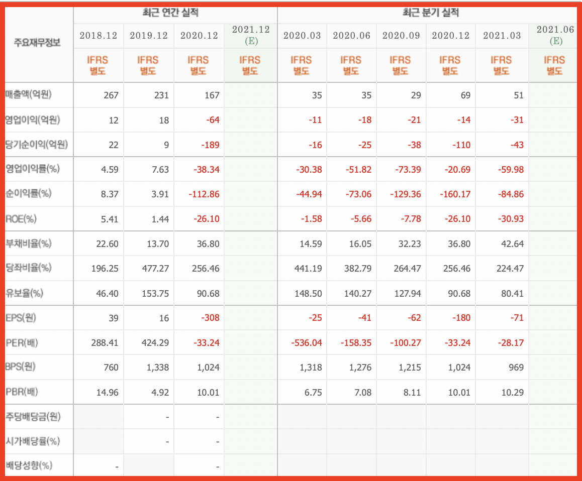 4. 21년 1분기 영업이익 : -43억