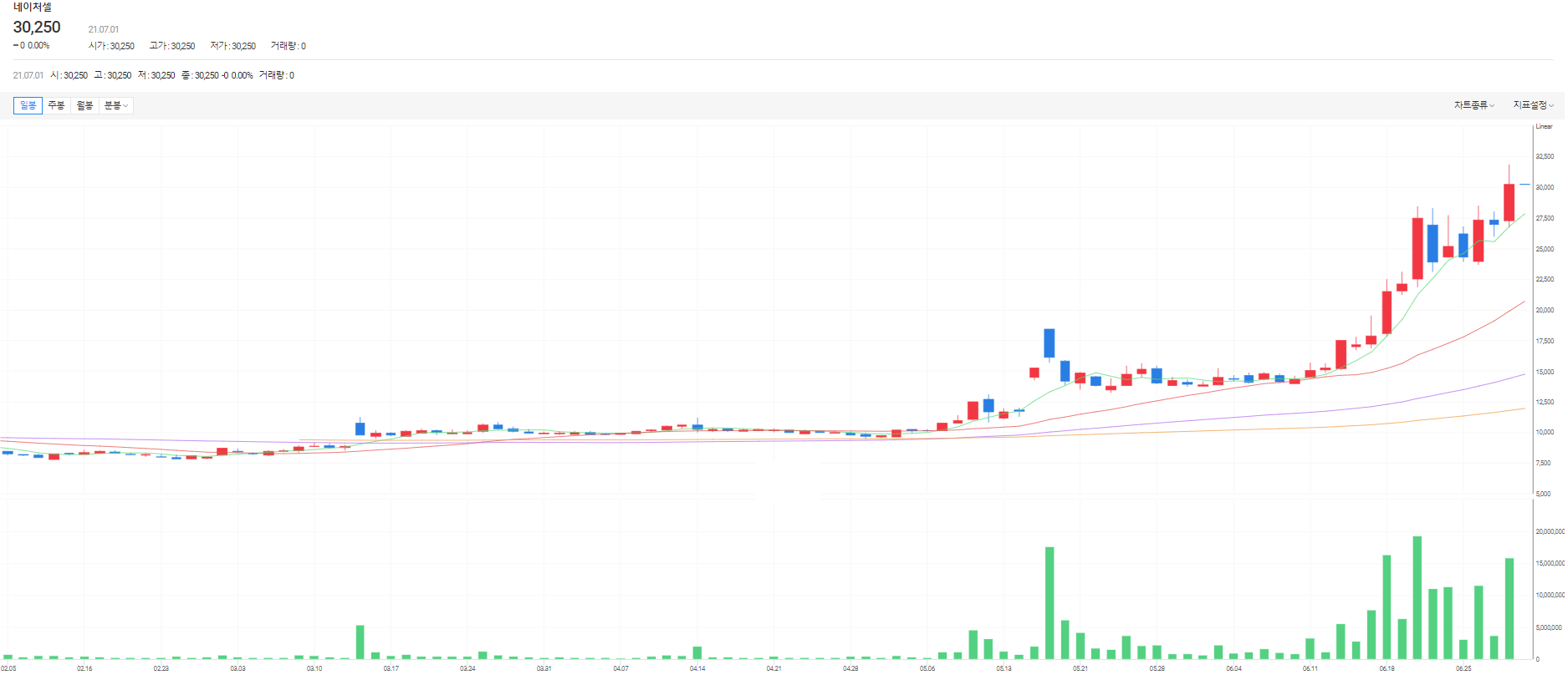 네이처셀은 지난 5월 관계사인 알바이오가 조인트스템의 임상 3상이 성공했다는 소식 이후 무서울 정도로 올라가고 있다.